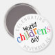 Celebrar o Dia Mundial da Criança com estes ímãs, que incluem a celebração do "Dia Mundial da Criança" num espectro colorido de letras rosadas, rodeadas de texto envolto em cima e em baixo. Copiar e Layout © W.H. Sim. Todos os Direitos Reservados. Mais informações em zazzle.com/expressionsoccasions
