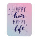 Esta design apresenta a frase relacionada ao cuidado com o cabelo "Happy Hair Happy Life".