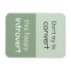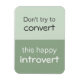 Não há nada de errado em ser introvertido. Dê às pessoas que querem que você seja mais extravertido uma mensagem educada com este slogan que diz: "Não tente converter este feliz introvertido"