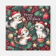 Este ímã de Natal perfeito para amantes de gatos. Ele apresenta três gatinhos adoráveis vestindo chapéus de Papai Noel e brincando com ornamentos. O fundo é verde festivo com bagas vermelhas e sotaques de ouro. Este ímã trará um pouco de alegria e gentileza para sua casa.