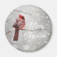 Um lindo cardeal se senta em uma árvore de inverno com neve mágica no fundo de uma bela fotografia de inverno de feriado. Deseje aos seus amigos um Feliz Natal com este ímã clássico.