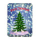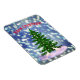 Feliz Natal, dia de nevar, abeto e coelhos brancos. Íman de saudação de Natal
