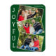 Imagem moderna de colagem verde de fotos de Natal com 3 fotografias da família em um padrão divertido de fotos sobrepostas com borda branca e a palavra Joyful escrita verticalmente ao lado. Encontre as suas três fotos favoritas para estes magnatas de férias da família.
