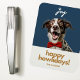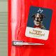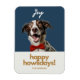 Moderno, festivo e divertido. Este magnata flexível de Natal apresenta um cão alegre com uma gravata vermelha, uma combinação de fontes contemporâneas e texto de nome personalizado. A cor do plano de fundo frontal é um azul escuro chic e a parte traseira da placa tem uma caixa de texto opcional se você preferir que sua mensagem seja impressa. Dica: deixe a caixa de texto vazia se preferir um cartão de vazio.