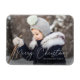 Deseje aos amigos e à família um Feliz Natal com um belo ímã fotográfico de férias! O ímã apresenta sua foto horizontal com sutis nevões bordeando o design. "Feliz Natal" é exibido em um roteiro de caligrafia branco e de tendências com o nome da sua família abaixo.