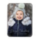 Deseje aos amigos e à família um Feliz Natal com um belo ímã fotográfico de feriado! O ímã apresenta sua foto vertical com sutis nevões bordeando o design. "Feliz Natal" é exibido em um roteiro de caligrafia branco e de tendências com o nome da sua família abaixo.