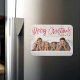 Um magnata de fotos de feriado com "Feliz Natal" exibido no topo da design, em um roteiro manuscrito vermelho. Personalize o ímã de Natal caprichoso com sua foto horizontal e seu nome de família.