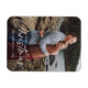 Magneta moderna de férias com sua foto vertical favorita de sangria de cheio com "Feliz Natal" em uma camada branca, escrita à mão. Personalize o elegante ímã de fotos de Natal adicionando seu nome e o ano.