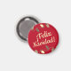 Um imã de Natal vermelho que deseja Feliz Natal em espanhol. Uma forma excelente de decorar pequenos espaços, assim como de distribuir como um pequeno presente de natal.