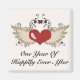 Um coração alado em tons quentes, vermelhos e neutros, ao combinar os presentes de casamento, papelaria, cartões de saudação e roupa com as palavras Um Ano de Felicidade Nunca Depois. Comemore seu primeiro ano de casamento junto com esses presentes de primeiro aniversário fofos e de tendências para você e seu cônjuge.