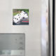 Apresenta uma foto de felpudo preto e branco que pendura de um espelho retrovisor. Faz um presente excelente para um entusiasta do carro.