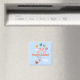 Magnet com minha design de um coelho fofo flutuando no céu segurando um monte de balões e carregando um cesto cheio de ovos de Páscoa. O texto diz "Felz pascoa!"