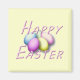 Os ovos de Páscoa coloridos estão no meio das palavras "Felz pascoa" num fundo amarelo pálido.