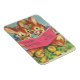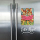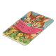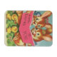 Este adorável ímã apresenta uma ilustração antiga de dois coelhos segurando um livro cor-de-rosa que diz "Felz pascoa para você", cercado por flores e um casal de pintinhos de bebês enquanto um pássaro azul canta junto.