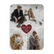 Crie um belo ímã fotográfico de férias com 3 fotos decoradas com neve caindo e um coração de xadrez de búfalo vermelho.