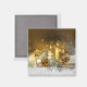 Velas Douradas Elegantes Snowy Winter Holiday Square Magnet. Sacos-presentes, cobertores, travesseiros, guardanapos-coquetéis, enfeites de árvores, selos postais, pratos e outros produtos disponíveis. Para solicitar este design em outro produto, entre em contato com o designer em: cheryl@cheryldanielsart.com.