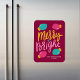 Espalhe as alegrias desta temporada de férias dando aos seus entes queridos um ímã brilhante e colorido de férias. O ímã de férias sem fotografias apresenta "Feliz + Brilho" em ouro, turquesa, letras cor-de-rosa contra um fundo magenta marrom/escuro. Personalize o ímã de férias moderno adicionando seu nome e o ano em texto branco. Projetado para coordenar com nossa coleção de feriados de Felizes e Luzes de Natal Brilhantes.