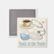 Uma seleção de ferramentas usadas por enfermeiros, médicos e EMTs. E o ingrediente mais importante. Muito café. O texto diz Ferramentas do Comércio.
