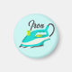 Um doce, teal e verde limão, ferro de lavanderia com fundo pálido. Texto "Ferro" no topo.