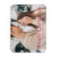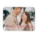 Um ímã de férias simples com sua foto horizontal de sangria de cheio com "Feliz Natal" exibido em uma elegante letra vermelha. Personalize o ímã de fotos de Natal com seu nome de família e o ano.