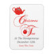 Esta bonito salvação da data da festa de Natal, o ímã apresenta uma delicada cartaz, um enfeites de natal e um bule de chá cobertos em um local vermelho vintage com trim prateado. A cor de fundo pode ser cortada por você para ajustado as cores do tema. O elegante motif vermelho de entrelaçamento de estrelas e flores lembra o antigo artesanato do fazer de rendas. Nos especializamos em designs feitos por medida, entre em contato conosco se você quiser um único plano de chá de natal feito por encomenda usando este adorável design.