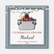 Com um fundo teal com pérolas douradas e lagostas de desenho animado, esta design é perfeita para a sua graduação, aniversário ou qualquer evento que você esteja hospedando. A design também pode ser personalizada com o nome do formando, além da escola e do ano de graduação.
