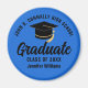 Este moderno ímã mais velho personalizado, azul e preto, apresenta a tipografia clássica do seu segundo grau ou nome da faculdade para a classe de 2025. Personalize com seu ano de graduação com o script manuscrito chic e formando o boné de um favor de festa de formatura personalizado do excelente.