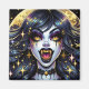 Íman de festas de Halloween. Vampiro negro e dourado com presas ouros e olhos quadrinhos pop art ai art. Legal para o Halloween ou qualquer pessoa que ama vampiros.
