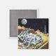 Ilustração retrô futurística de ficção científica de planetas e imagem do espaço sideral. Uma estação espacial na lua com vista para o planeta Terra no céu noturno com estrelas no futuro. Um design clássico de livro de histórias em quadrinhos de ficção científica retrô dos anos 50.