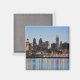 Esta é a lindíssima linha do horizonte da cidade de Filadélfia, tirada ao pôr do sol do outro lado do rio Delaware, na margem de Camden. A arquitetura dos arranha-céus de Filadélfia está exposta nesta foto. Center City, a área centro de Filadélfia, é o foco desta fotografia. As luzes da cidade lançam reflexões coloridas sobre a água.