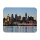 Esta é a lindíssima linha do horizonte da cidade de Filadélfia, tirada ao pôr do sol do outro lado do rio Delaware, na margem de Camden. A arquitetura dos arranha-céus de Filadélfia está exposta nesta foto. Center City, a área centro de Filadélfia, é o foco desta fotografia. As luzes da cidade lançam reflexões coloridas sobre a água.
