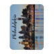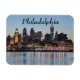 Esta é a lindíssima linha do horizonte da cidade de Filadélfia, tirada ao pôr do sol do outro lado do rio Delaware, na margem de Camden. A arquitetura dos arranha-céus de Filadélfia está exposta nesta foto. Center City, a área centro de Filadélfia, é o foco desta fotografia. As luzes da cidade lançam reflexões coloridas sobre a água.