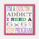 Um ímã divertido para a colcha na sua vida! Você é um "Viciado em Quilting"? Você passa todo seu tempo livre fazer colcha? Este ímã bonito é um presente perfeito para alguém que colcha. "Sou um viciado em Quilting, preciso de um programa passo 6 x 6 1/2". Personalize o quadro de fundo com o botão de cor "Personalizar". Este pequeno ímã é excelente de paus de colcha. Imagem disponível em um botão de retorno do pino! Veja abaixo.