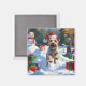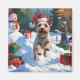 Íman Fio Fox Terrier nevando com chapéu de Natal