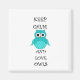 Coruja de turquesa bonita com as palavras manter calma e amar corujas