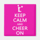 Mantenha Calma e Animação, O gráfico de cheerleader rosa e branco é divertido e excelente para meninas e mulheres que amam espírito de equipe, líderes de torcida e torcendo para sua equipe favorita, ou competir em competições competitivas de líderes de torcida. Fundo rosa quente brilhante com a silhueta de um cheerleader pulando com pom-poms em branco. Todos os Designs Copyright © 2013 www.CuteComfy.com