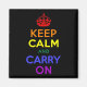 Mantenha-se calmo e continue no estilo de vintage design num arco-íris de cores contra fundo preto.