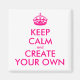 Olá e bem-vindos, crie e personalize seu próprio design "mantenha a calma" para este é único! Substitua as palavras "mantenha a calma e crie a sua" pela palavra de sua escolha e escolha a cor de fundo que você deseja! Você pode imaginar e fazer tudo! ex: "mantenha calma e carregar" "mantenha calma e dança" "mantenha calma e me ame" ... divirta-se, deixe sua criatividade!