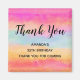 Um ímã de festa com uma imagem de um desenho abstrato pintado. Listras amarelas azuis e rosa. Padrão de fundo torto e vibrante.