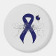 Fita azul escura com uma borboleta, círculos e espirais. A fita azul-escura / marinho representa a Consciência da Espondilite Anquilosante, Consciência da Apraxia, SRA (Síndrome de Dificuldade Respiratória Aguda), Consciência das Lesões Plexíticas Brincantes, Consciência dos Direitos da Vítima do Crime, Consciência da Disautonomia, Consciência da Educação, Consciência do Vírus Epstein-Barr, Consciência do Erb Consciência, Consciência Familiar da Polipose, Sensibilização Livre Para A Voz, Sensibilização Para Os Furacões, Sensibilização Para O Furacão Katrina, Sensibilização Para A Iquitose, Histiocitose Celular Langerhans, Perda de Consciência para Dever, Síndrome Das Pernas Inquietas, Sensibilização Para A Música, Sensibilização Para A Mielite Transversa, Aceleração Da Água indica a consciência, a consciência da qualidade da água e a consciência da segurança da água. E também março é a Consciência da Síndrome da Fadiga Crônica, Consciência do Cancer Colônico, Consciência do Cancer Colorretal, Consciência do Cancer Retal e Mensagem de Consciência da Síndrome do Tigela Curta. Abril é Mês de Sensibilização para a Prevenção do Abuso Infantil. Maio é a Consciência da Artrite, a Consciência da Colite, a Consciência da Doença de Crohn, a Consciência da Síndrome de Guillian Barre, a Consciência da Doença de Huntington e o Mês de Sensibilização para o ME/CFIDS. August está afogando a consciência, e Steven Johnson Syndrome Awarness Month. Setembro é a Consciência da Alopecia, Sensibilização da Distonia, Sensibilização para a Histiocitose, Sensibilização para a Leucodistrofia, Sensibilização para a Myositis e Mês de Consciência para a Síndrome de Reye. Outubro é a Consciência da Cistite Intersticial e o Mês de Consciência dos Direitos das Vítimas.