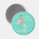 Na moda design com um toque retrorreflector com um flamingo rosa festivo vestindo um chapéu vermelho de Papai Noel, estrelas e palmeiras decoradas com bolhas colocadas sobre um fundo aqua. Magnet com um design personalizável para você personalizar com seu próprio texto, imagens e ideias. Uma imagem de arte digital original criada por Quirky Chic.