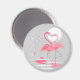 Um par de flamingos cor-de-rosa com pescoço curvado para formar uma forma cardíaca no mar em uma praia iluminada pela lua. Um na moda, design romântico com um toque retrorreflector criado em um esquema de cor rosa, cinza e branco com um fundo de mudança de cor. Um design personalizável para você personalizar com seu próprio texto, imagens e ideias. Uma imagem de arte digital original.