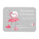 Um par de flamingos cor-de-rosa com pescoço curvado para formar uma forma cardíaca no mar em uma praia iluminada pela lua. Um na moda, design romântico com um toque retrorreflector criado em um esquema de cor rosa, cinza e branco com um fundo de mudança de cor. Um design personalizável para você personalizar com seu próprio texto, imagens e ideias. Uma imagem de arte digital original.