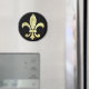 Íman redondo com uma imagem de uma folha de ouro, flur de lis, a preto. Veja toda a coleção de ímãs de Cancan em TOUCHES ESPECIAIS | Seção Favoritos para festas.