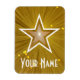 Design moderno com ouro "brilhante" e estrela branca sobre fundo amarelo escuro. Imã de geladeira com um design personalizável para você personalizar com seu próprio texto, imagens e ideias. Note que esta é uma imagem impressa criada usando fotografias originais e técnicas digitais, que ela não brilha ou contém faíscas reais.