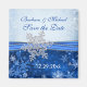 Floco de neve prateado sobre uma Imã salve a data de fundo azul com flocos de neve