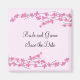 Galhos cor-de-rosa elegantes florescem com um fundo de cor-de-rosa macio para destacar os nomes da noiva e do noivo e a data do casamento. Personalizar conforme desejado.