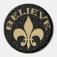 Mantenha a esperança no seu frigorífico com este íman Fleur de Lis Crê Preto e Dourado! O ímã apresenta uma Fleur de Lis dourada sob a palavra "Acredite" sobre fundo preto coberto com símbolos Fleur de Lis.