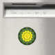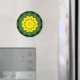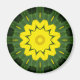 Uma mandala geométrica caleidoscópica baseada em elementos de margaridas amarelas.