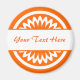 Um modelo de na moda com um modo de flor geométrico circular e uma banda branca prontas para serem personalizadas com o seu texto.